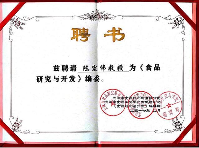 陈宏伟为《食品研究与开发》编委